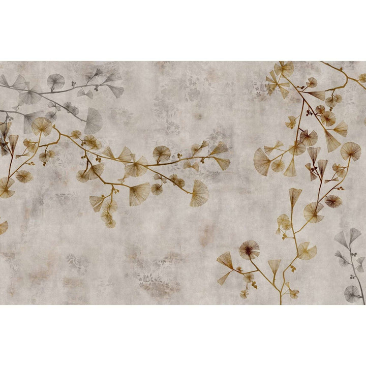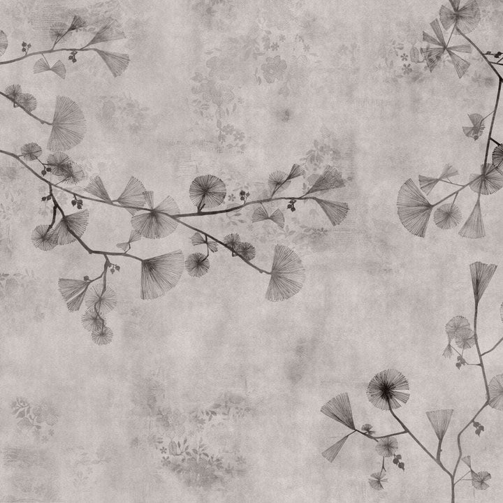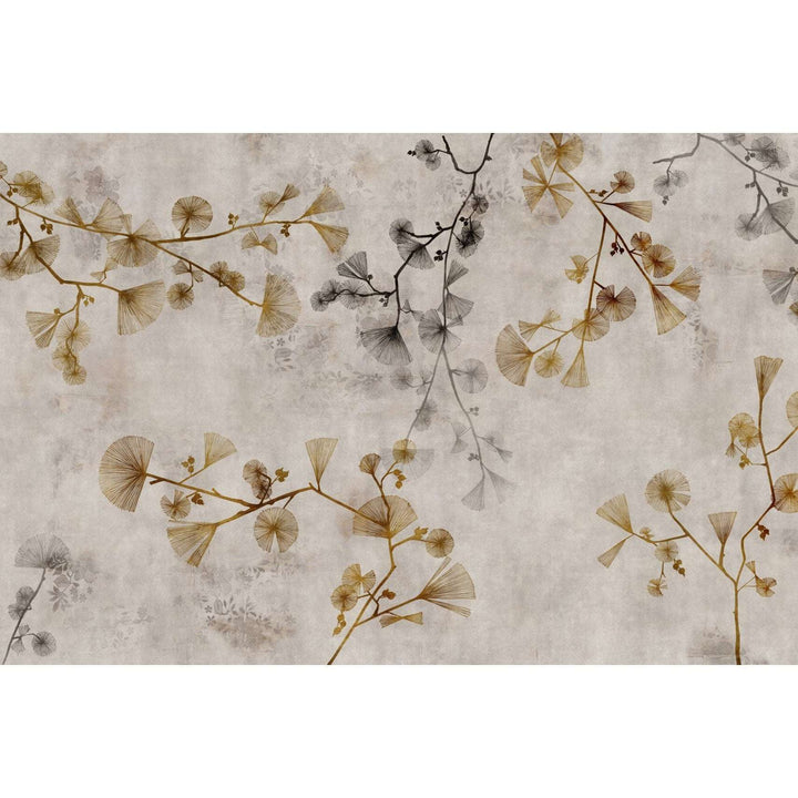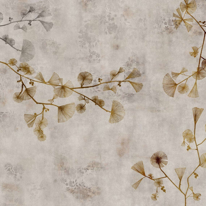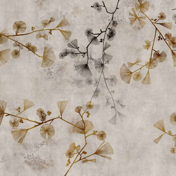 Keiko behang van Glamora. Dit behang op maat heeft natuurlijke tinten met sfeervolle bloemen in een oosterse sfeer. Een rustig en ingetogen behang. Italiaans luxe behang op maat Keiko van Glamora.