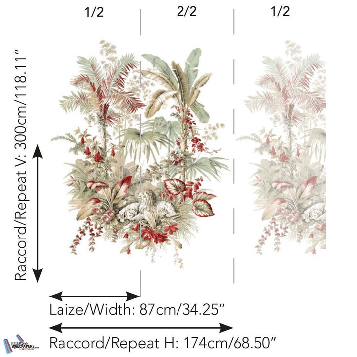 Met onze behangcalculator bereken je eenvoudig hoeveel set(s) Le Repos des Fauves behang je nodig hebt.