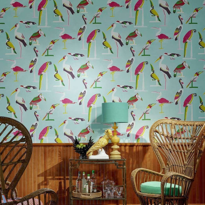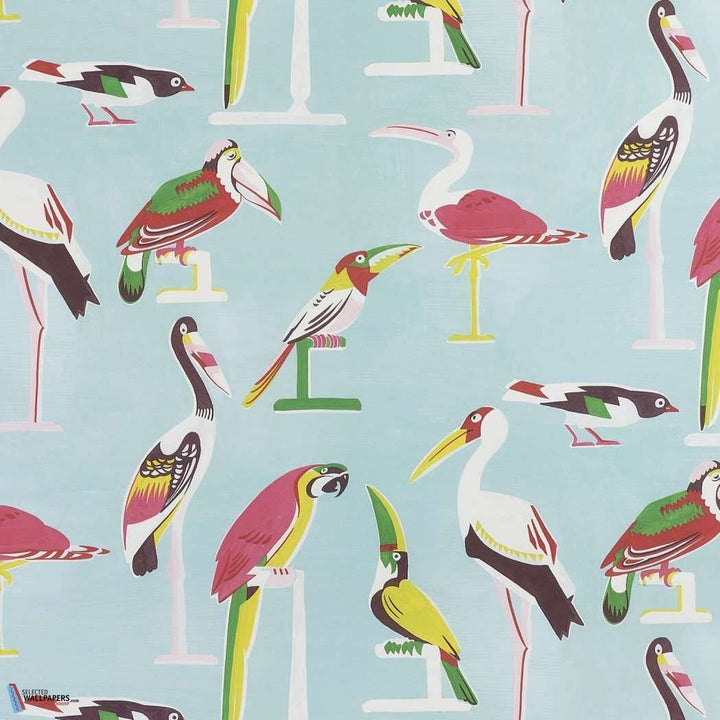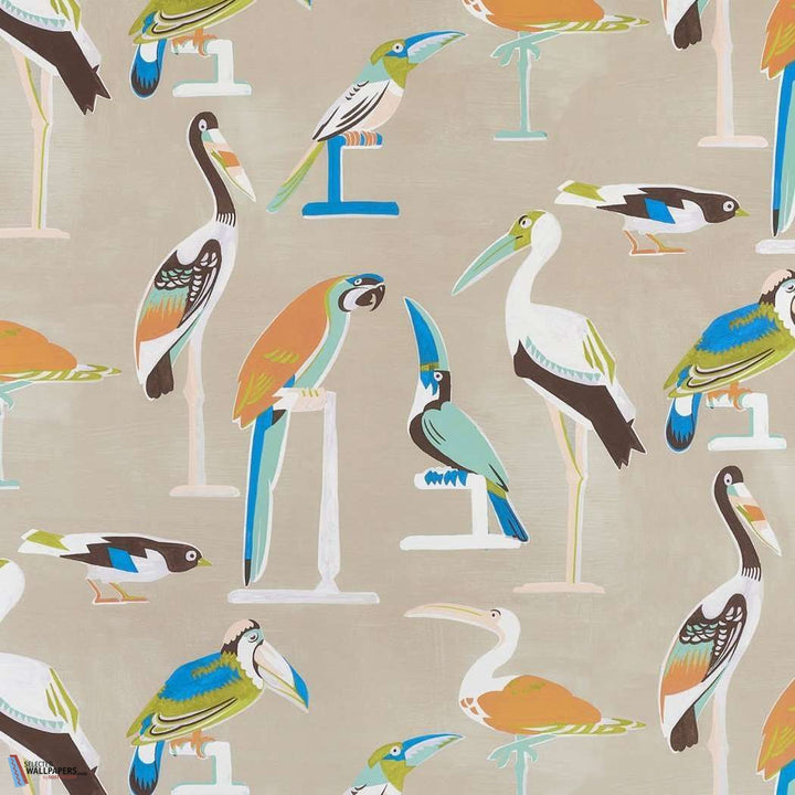 Les oiseaux perches behang van Pierre Frey. Het behang heeft een ontwerp vol handgeschilderde vogels. Een kleurrijk en vrolijk behang!