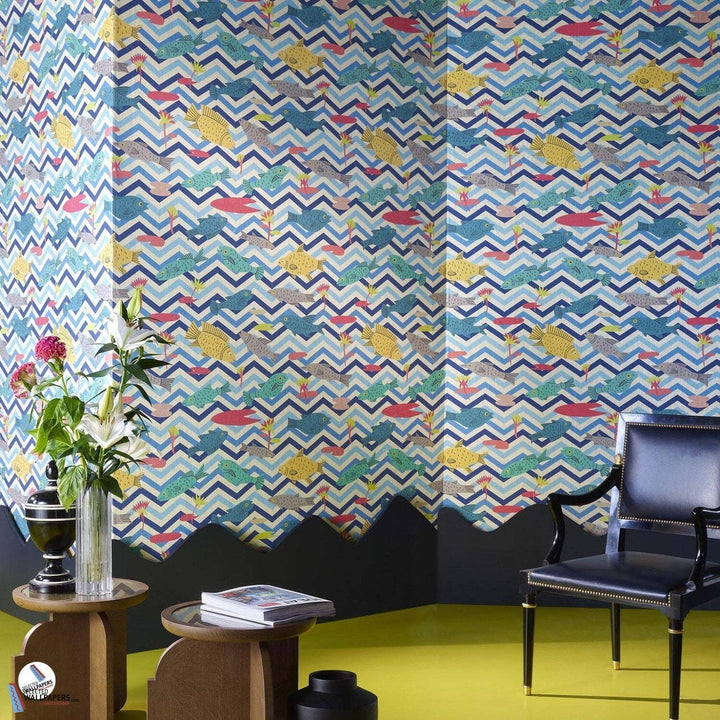 Met onze behangcalculator bereken je eenvoudig hoeveel meter Les Poissons du Nil behang je nodig hebt.