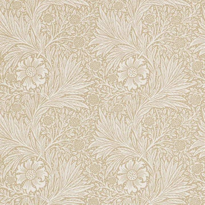 Marigold behang van Morris & Co. Met een enkele kleur creëerde Morris verbluffende patronen die even goed werkten als ze op behang en stof werden aangebracht. Dit ontwerp uit 1875 is zo'n patroon met veelzijdigheid en een blijvende aantrekkingskracht in het hart.
