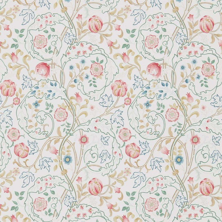 Mary Isobel behang van Morris & Co. Scrollende acanthusbladeren en bloemen sieren dit behang, aangepast van een borduurwerk ontworpen in de jaren 1890 door JH Dearle.