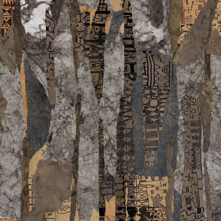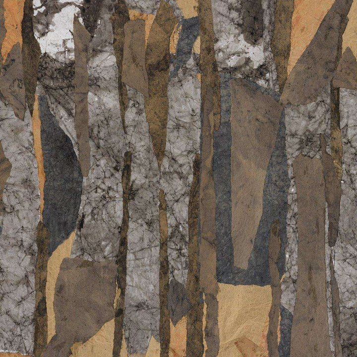 Mbuti behang van Inkiostro Bianco. Dit behang op maat is een prachtig ontwerp geïnspireerd op de natuur in Afrika. Stroken papier die elkaar overlappen geven een geometrische verticale uitstraling. Een natuurlijk aanblik vol diepte door het kleurgebruik.