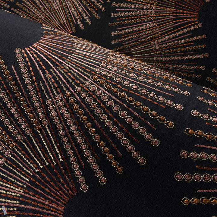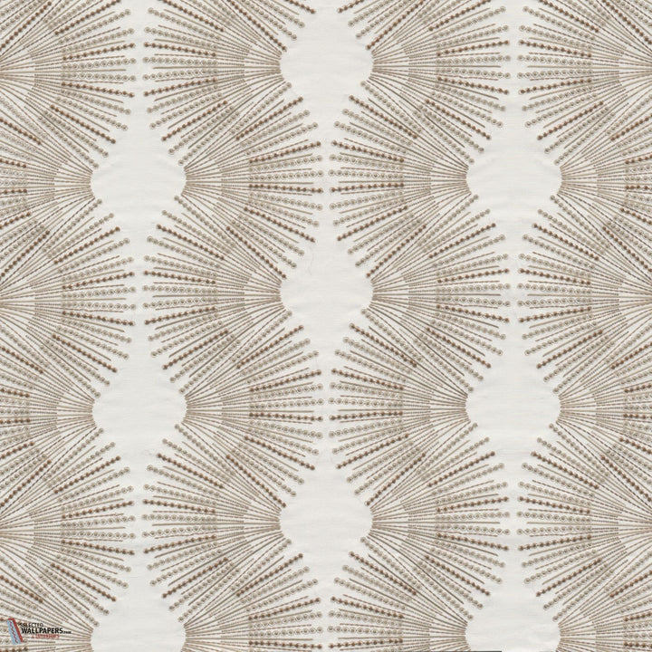 Wat het Miro behang zo bijzonder maakt, is de harmonieuze combinatie van borduurwerk en houten kraaltjes. Het fijne borduursel voegt een subtiele elegantie toe aan het patroon, terwijl de houten kraaltjes een bohemien en exotisch element brengen dat doet denken aan de rijke ambachtelijke tradities van de Marquesaseilanden. Dit speelse, maar verfijnde patroon zorgt voor een dynamische visuele ervaring, waardoor het behang een luxe textuur en diepte biedt die je interieur direct verrijkt.