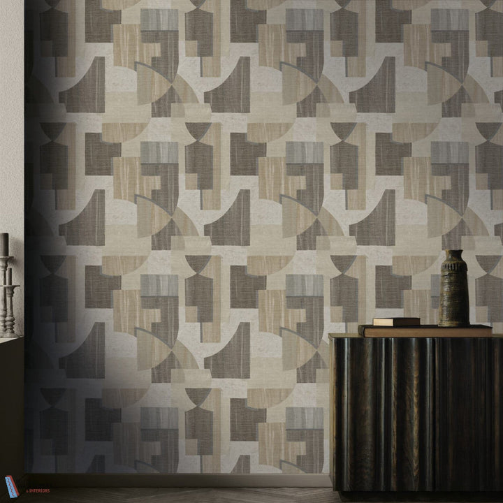 Monte Carlo behang HookedOnWalls. Dit behang toont een geometrisch spektakel van overlappende vormen in wisselende kleurtinten. Behang Monte Carlo HookedOnWalls Penthouse behangcollectie.
