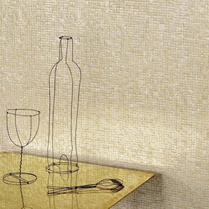 Nacres luxe behang van Elitis. Het behang heeft een mozaïek met een luxe lichte glans als afwerking. Het doet denken aan parelmoer. Een prachtig behang dat verkrijgbaar is in een serie kleuren.