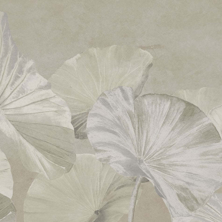 Naiadi Re-Edition behang van LondonArt. Dit behang speelt met de bekende lotus. De lotusbladeren sieren de ingetogen ondergrond. Behang Naiadi Re-Edition LondonArt Exclusive Collection.