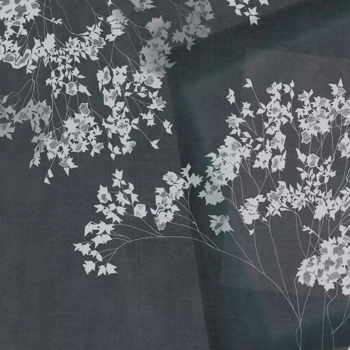Nebula behang van Glamora. Dit badkamer behang heeft een natuurlijke uitstraling met takken en bladeren om een donkere ondergrond.