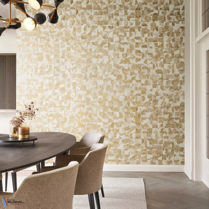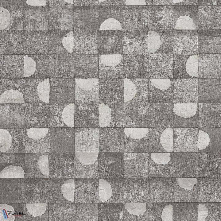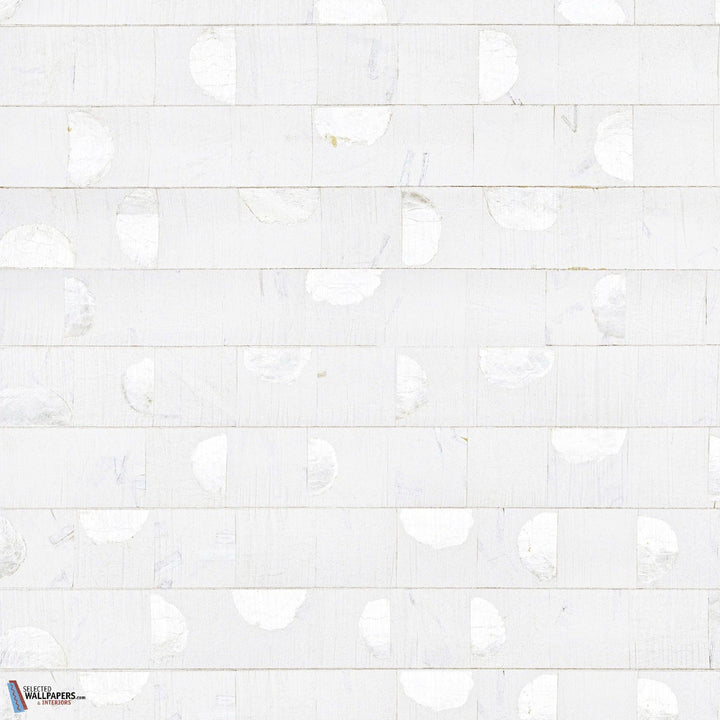 Nias behang Omexco by Arte. Dit behang is gemaakt van stukjes capiz schelpen in een sprekende samenstelling en geplakt op gekleurd papier. Behang Nias Omexco Archipelago behangcollectie.