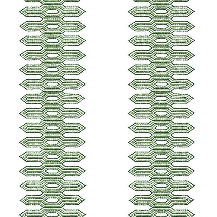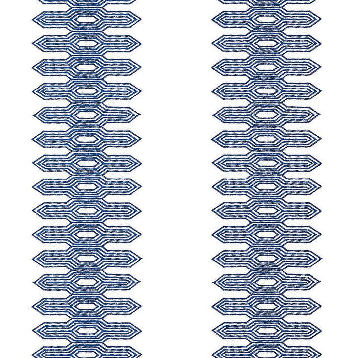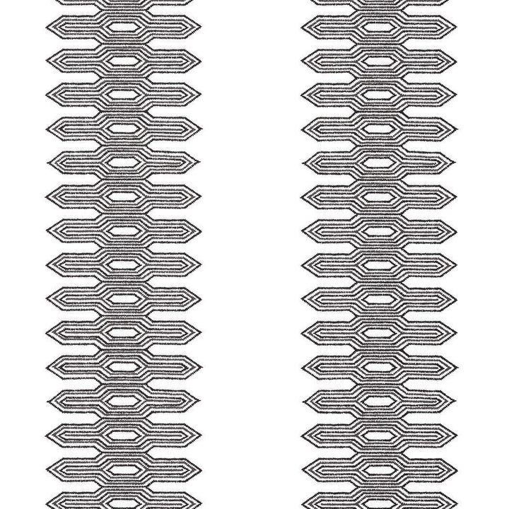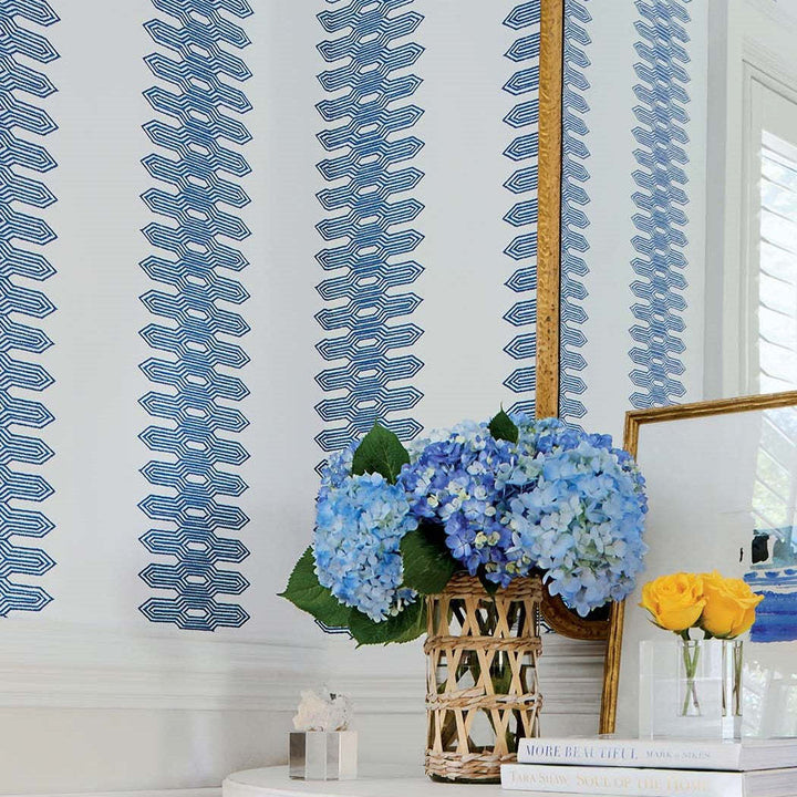 Nola Stripe behang van Thibaut. Dit behang heeft een retro patroon die doet denken aan de jaren 60. Een verticale print met een stiksel effect op handborduurwerk van stof na te bootsen. Behang Nola Stripe Thibaut uit de Eden collectie.