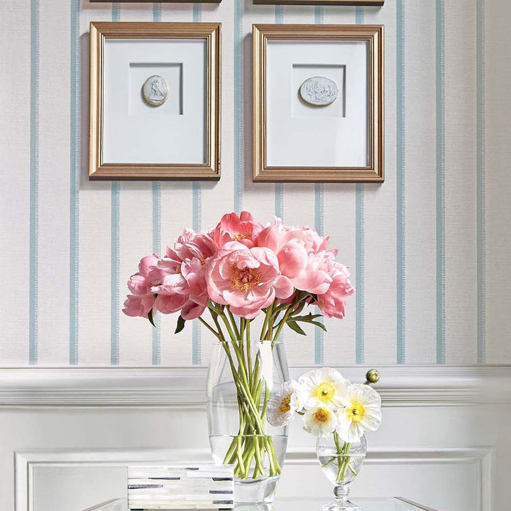Notch Stripe behang van Thibaut. Dit behang heeft een eenvoudig streep patroon met accenten van stiksels. Behang Notch Stripe Thibaut uit de Colony collectie.