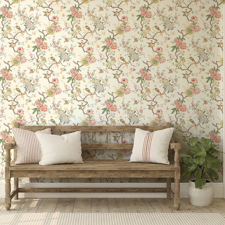 Oriental Bird behang GP&J Baker. Dit behang toont een prachtig ontwerp van vogels op sierlijke takken vol kleurrijke bloemen. Behang Oriental Bird GP&J Baker Originals Wallpapers collectie.