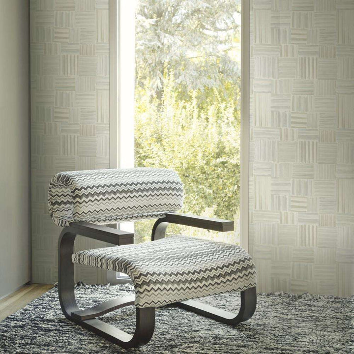 Palenque behang van Missoni Home by Arte. Dit behang heeft een geometrisch patroon. Het patroon wordt gecreeerd door penseelstreken die uit de hand gezet zijn in een grote diversiteit aan kleur.