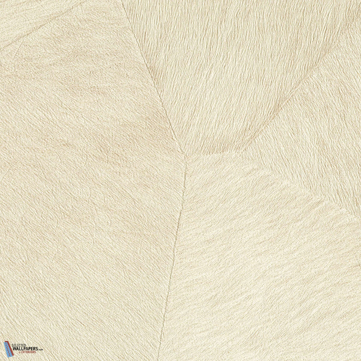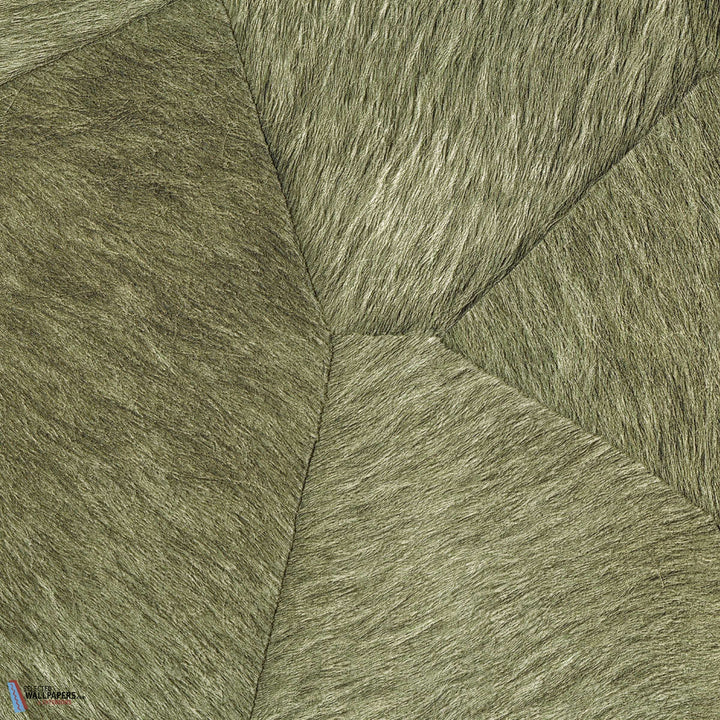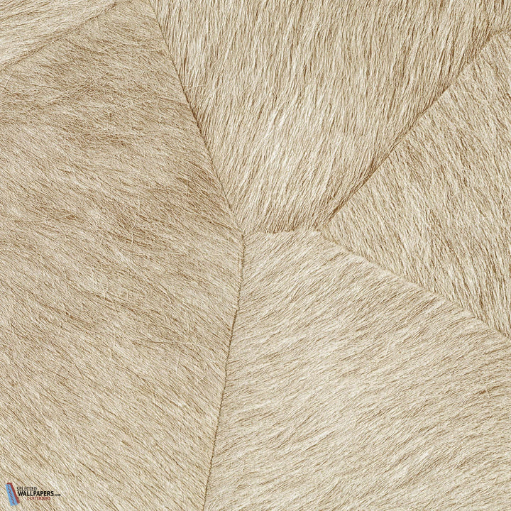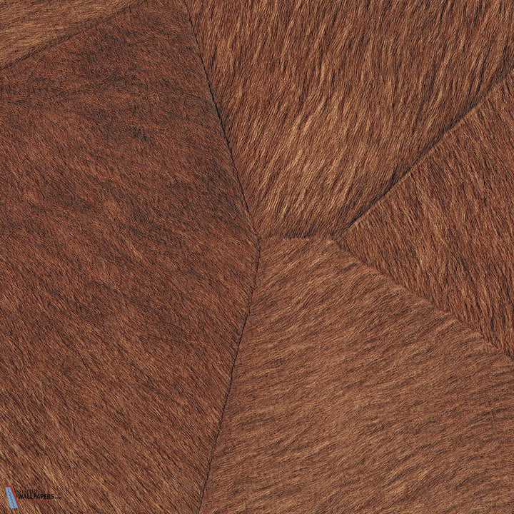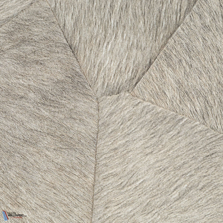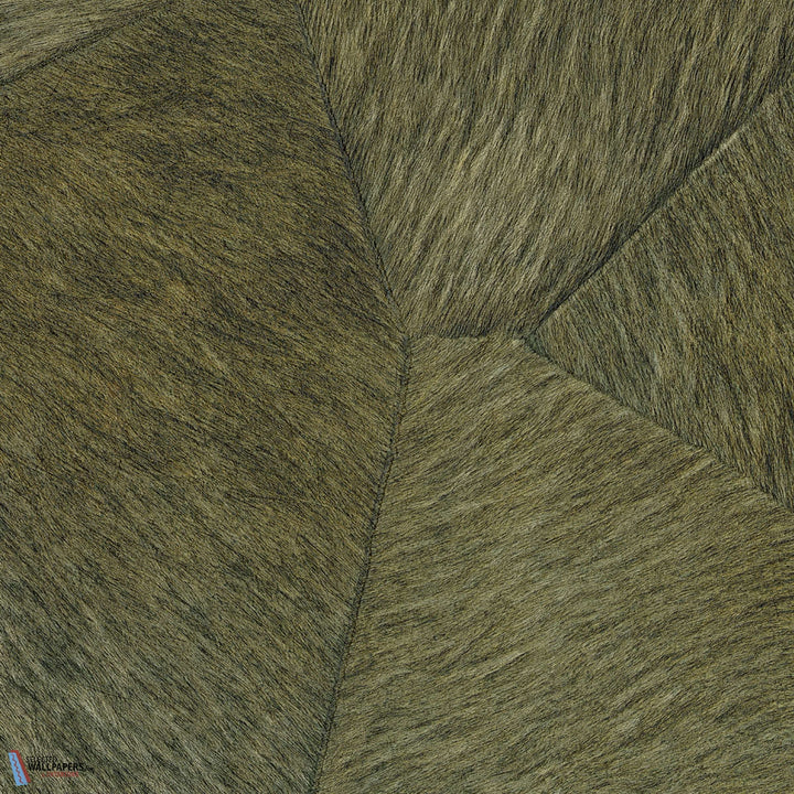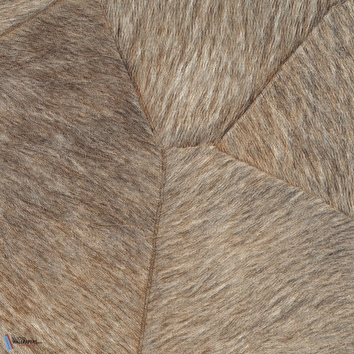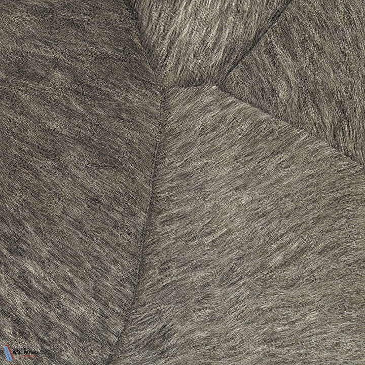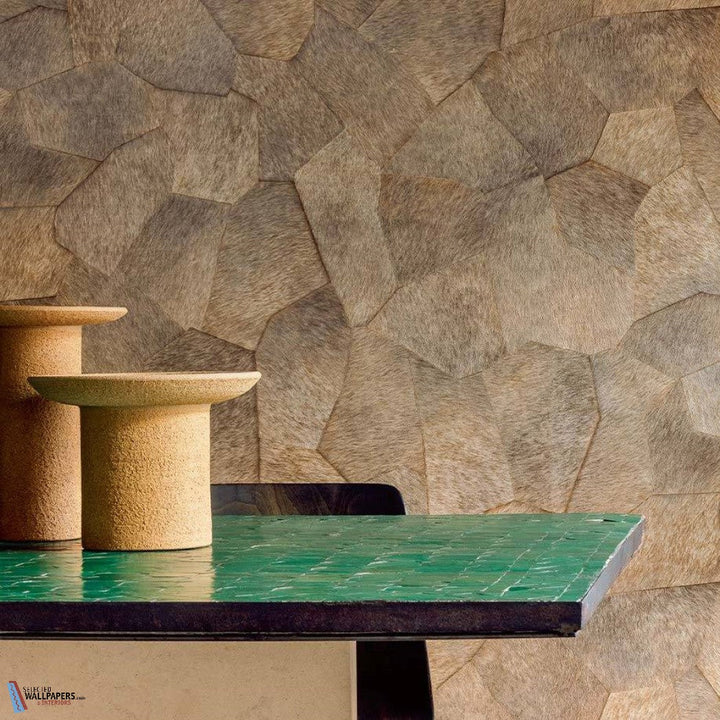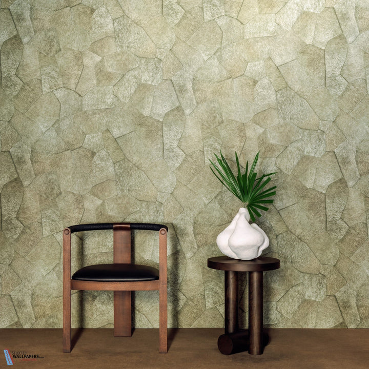 Pampa behang Elitis. Dit behang toont een dierenhuid vol kleurnuances uitgebracht als een vinyl. Verwerkt in een geometrisch patroon van willekeurige vlakken. Behang Pampa Elitis Sauvages behangcollectie.