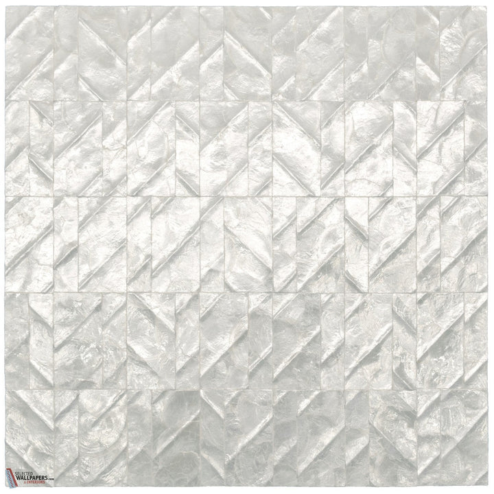 Perula behang van Arte. Dit behang van capiz schelpen toont een rechtlijnig patroon. De ongelijke blokken geven de muur een uniforme uitstraling. Een weelderig en rijk effect dankzij het parelmoer. Behang Perula Arte Luster behangcollectie.