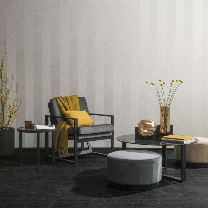 Portfolio behang van Omexco by Arte. Dit luxe textiel behang heeft verticale strepen met een visgraat motief. Dit behang is verkrijgbaar in vier eigentijdse kleuren.