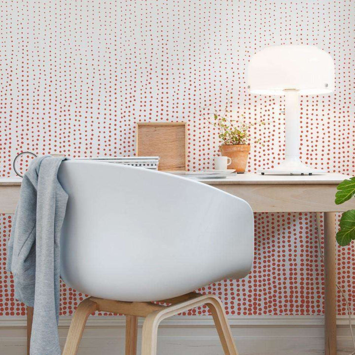 Rain Drops behang van Les Dominotiers. Het behang heeft een patroon van stippels die als regendruppels vallen met een verloop in grootte. Verkrijgbaar in verschillende kleuren.