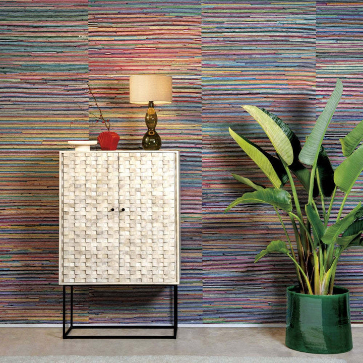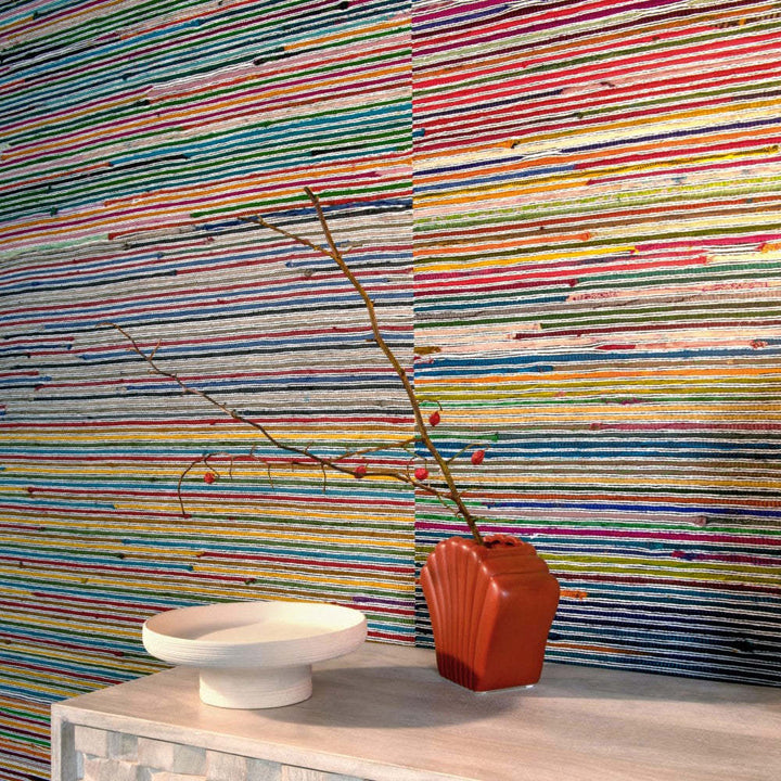 Met onze behangcalculator bereken je eenvoudig hoeveel meter Rainbow Raj behang je nodig hebt.