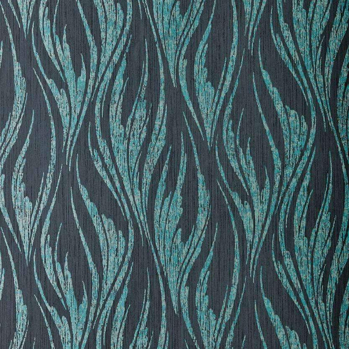 Herinnerend aan de glinsterende golven van stromen met zachte vloeiende lijnen en iriserende, lichtreflecterende inkten in minerale, zwarte, blauwe schemering en glinstering.