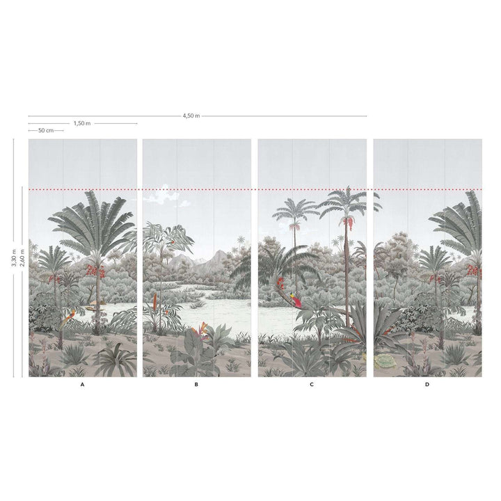 Met onze behangcalculator bereken je eenvoudig hoeveel panelen Riviere des Parfums Panels behang je nodig hebt.