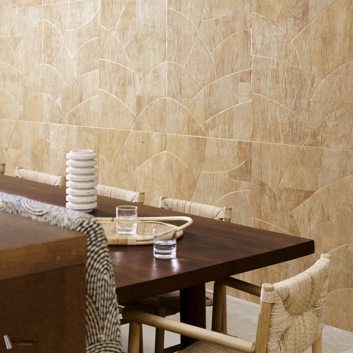 Het Rubra behang Arte is een indrukwekkend en luxueus ontwerp dat de natuur naar binnen haalt. Rubra behang is onderdeel van de Arte Melaky behangcollectie en toont een prachtig patroon. Het patroon is gemaakt van grote stukken moerbeischors, wat zorgt voor een visueel dynamisch en organisch effect. De onregelmatige structuur van de schors creëert een uniek, levendig patroon dat niet alleen de muren siert, maar ook een warme en verfijnde sfeer aan de ruimte toevoegt. De variërende kleurnuances van het behang zorgen voor een speels effect en dragen bij aan de luxueuze uitstraling van dit bijzondere ontwerp.