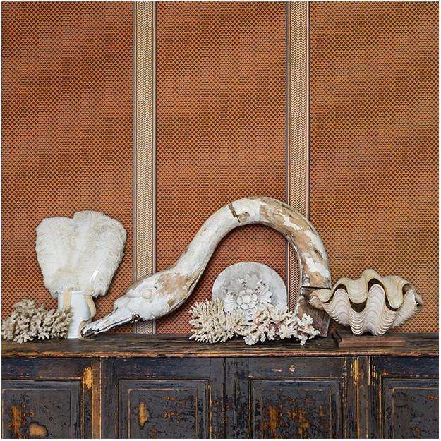 Puck Stripe behang van Les Dominotiers. Het behang is een geometrisch behang dat op traditionele wijze is gedrukt met driehoeken en zigzaglijnen. De verticale streep geeft het behang een klasse uitstraling.