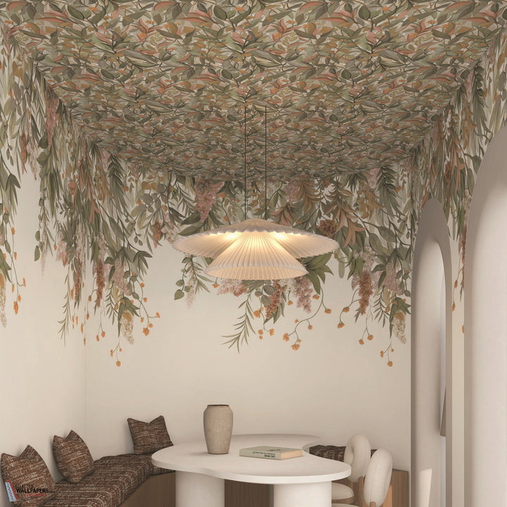 Het Solandra behang is versierd met een delicate bladmotief dat de schoonheid van de natuur op een subtiele en gestileerde manier naar binnen haalt. Het ontwerp is perfect in zijn eenvoud, waarbij de bladeren elegant over de muur lijken te bewegen, wat zorgt voor een gevoel van beweging en diepte. Het Solandra behang kan een rustgevende sfeer creëren, vooral wanneer het op het plafond wordt toegepast. Door het op het plafond te gebruiken, kun je de ruimte naar boven laten doorstromen en het Wisteria paneel op een naadloze manier voortzetten, wat zorgt voor een mooi en harmonieus effect.
