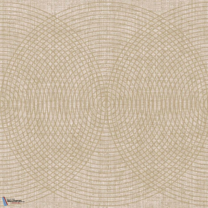 Sound Wave behang van Texam wallmasters. Grote cirkels die in elkaar overlopen vormen het patroon voor dit luxe behang. Verkrijgbaar in een serie natuurlijke kleuren.