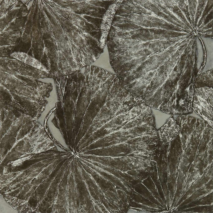 Taisho Deco behang Zoffany .Een behang vol lotusbladeren die ingewikkeld vervaardigd zijn met behulp van ambachtelijke verguldingstechnieken om het kunstwerk voor dit prachtige behangpaneel te maken, en is een kleinere versie van het Taisho-paneel. Behang Taisho Deco Zoffany The Muse collectie.
