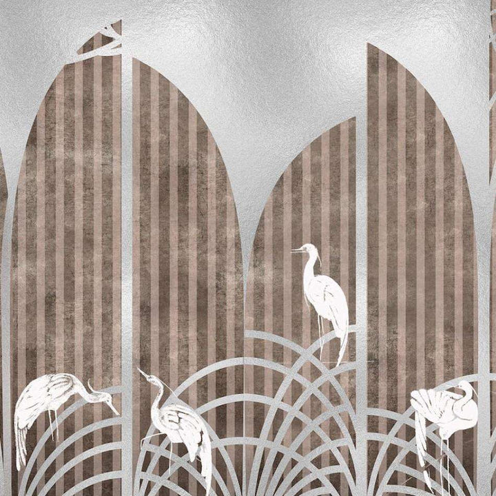 Tassel Metallics behang van Coordonne. Een behang met Oosterse sfeer. Een ontwerp met kraanvogels en lichte retro vibe. Gedrukt op metallic goud of zilver is dit een unieke eyecatcher.