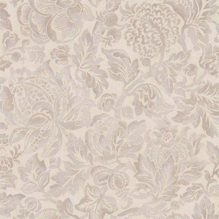 Thackeray behang Sanderson. Een boeiend behang, dit ontwerp is een multidirectioneel damast met bessen en gestileerde bloemhoofdjes, bedrukt met metalen effecten voor extra diepte en beweging. Kalmerende kleuren en een gevoel van zacht ritme maken dit ontwerp oneindig gemakkelijk om mee te leven. Behang Thackeray Sanderson Chiswick Grove collectie.