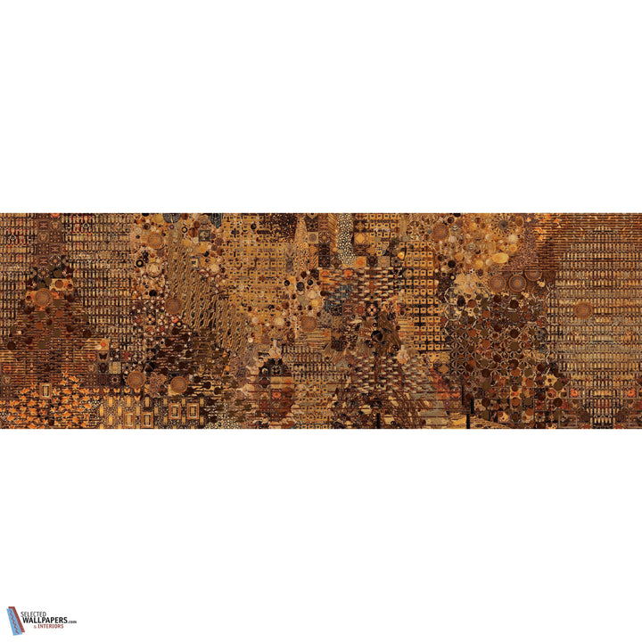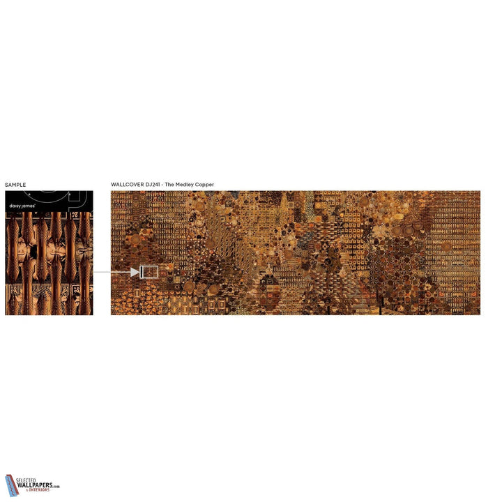 The Medley Copper behang Daisy James. Dit behang op maat toont een reeks ingewikkelde details en patronen in geel gouden tinten. Een warm en sfeervol behang. Behang op maat The Medley Copper Daisy James.