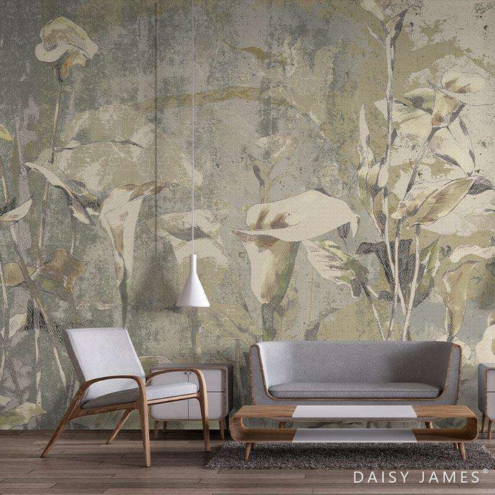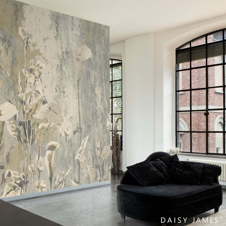 The Perigone exclusief behang van Daisy James. Dit behang heeft een modern uiterlijk vol bloemen en grafische details.. Dit behang wordt op maat gemaakt.