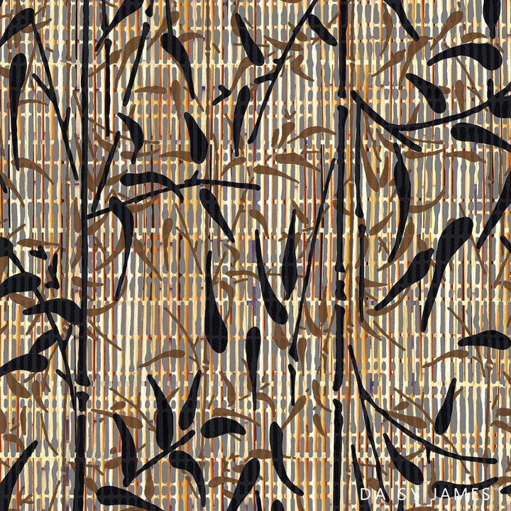 The Sumi-E behang van Daisy James. Dit behang heeft een natuurlijke uitstraling door zijn bamboe stammen en bladeren. Een mooi diepte effect geeft een verruimend gevoel aan de ruimte. Geef je kamer een natuurlijke touch met dit behang op maat.
