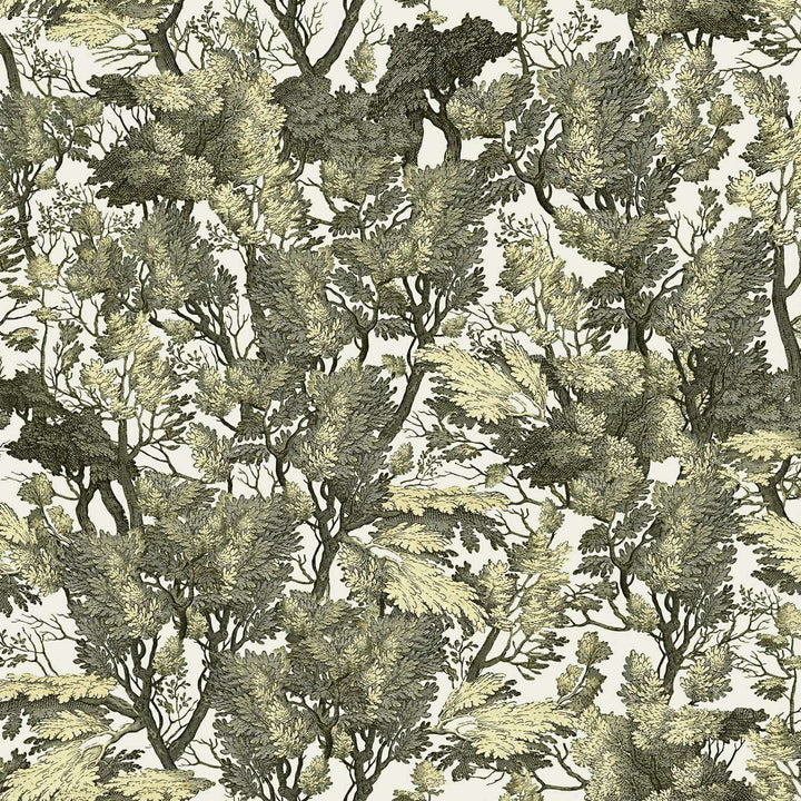 Tree Folliage behang van Mind the Gap. Dit behang is een zacht getint ontwerp met delicaat boom gebladerte. Een handgetekende illustratie die een botanisch en licht behang creëert.
