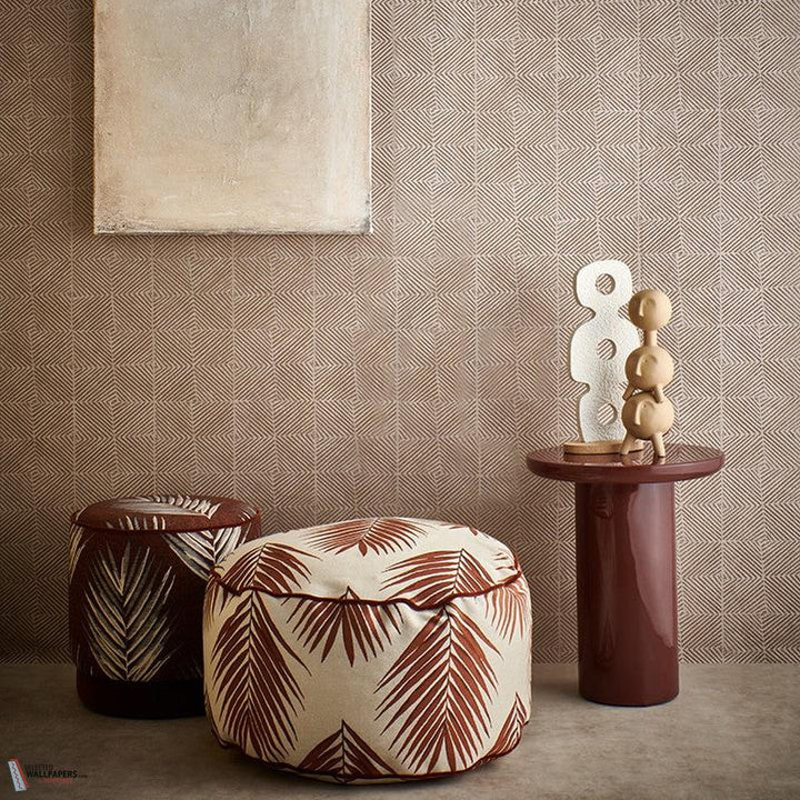 Het Tyre behang heeft een gedetailleerd geometrisch patroon dat lijkt op een reliëfstructuur. Dankzij het spel van lijnen en schaduwen ontstaat een optische diepte, wat de muur een luxueuze en dynamische uitstraling geeft. De zachte, neutrale tinten zorgen ervoor dat dit behang veelzijdig toepasbaar is in verschillende interieurstijlen, van modern tot klassiek.