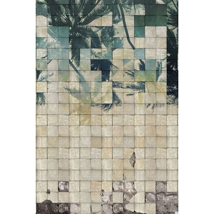 Upside Down behang van LondonArt. Dit badkamer behang zit vol authentieke tegeltjes met een tropische twist.