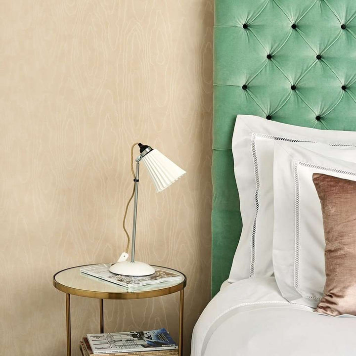 Watered Silk behang van Cole and Son. Het behangontwerp is een van de oudste afdrukken van Cole & Son, die meer dan een eeuw oud zijn. Deze nieuwste versie is in de loop der jaren op verschillende manieren geproduceerd en bevat het slimme gebruik van een fijne paarlemoer bedrukte ottomane textuur om een heerlijk zacht glinsterend zijdeachtig moiré-effect behang te creëren.
