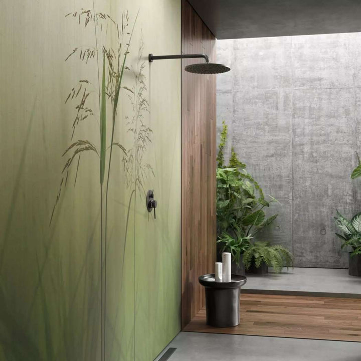 Whisper behang van Glamora. Dit badkamer behang heeft een natuurlijke sfeer de grasweide. Een aangename en natuurlijke sfeer.