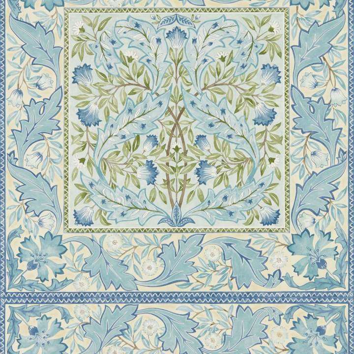Gemaakt met elementen van twee borduurmotieven ontworpen door William Morris c.1880. Wilhelmina is een grote betegelde herhaling van schuivende acanthusbladeren en klokbloemen omringd door een decoratieve rand. Met zijn mooie tonale uiterlijk is dit grootschalige behangontwerp beschikbaar in een mooie Indigo-kleurstelling.
