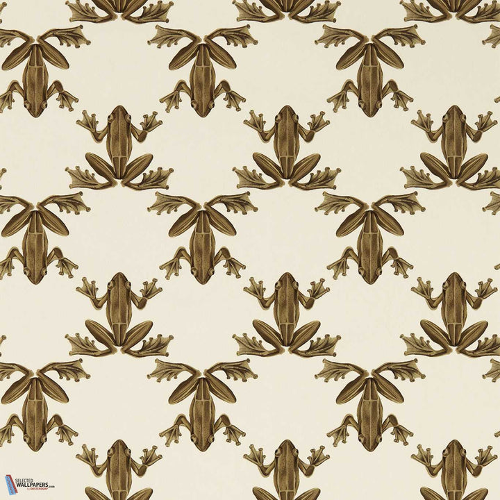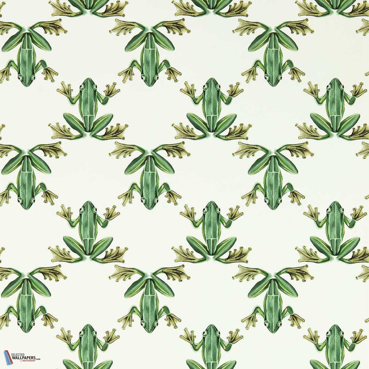 Wood Frog behang Harlequin. Dit behang toont een speels ruitpatroon van grillige kikkers. Behang Wood Frog Harlequin Colour 4 behangcollectie.