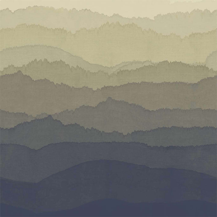 Wray behang van Zoffany. Oorspronkelijk met de hand geschilderd op natuurlijk linnen met kleurstof, zijn lagen inkt zorgvuldig bedekt om een sereen etherisch landschap op dit brede behang te creëren. Bergachtige vormen worden op een gouden basis geplaatst om de subtiele kleurdraaiing te verhogen en het geleidelijke ombré-effect roept een gevoel van diepte op. Een perfect ontwerp om rust te creëren. Behang Wray Zoffany the Muse collectie.